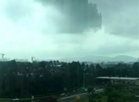 La vidéo qui a été enregistrée par un résident local semble montrer une ville mystérieuse énorme, y compris les gratte-ciel, flottant dans les nuages sur la ville de Foshan dans la province centrale de Guangdong, en Chine le 7 Octobre 2015. L’apparition qui a été vue par des centaines des résidents locaux choqués n'a duré que quelques minutes avant de disparaître complètement.